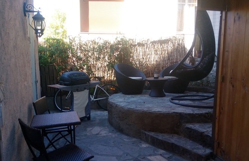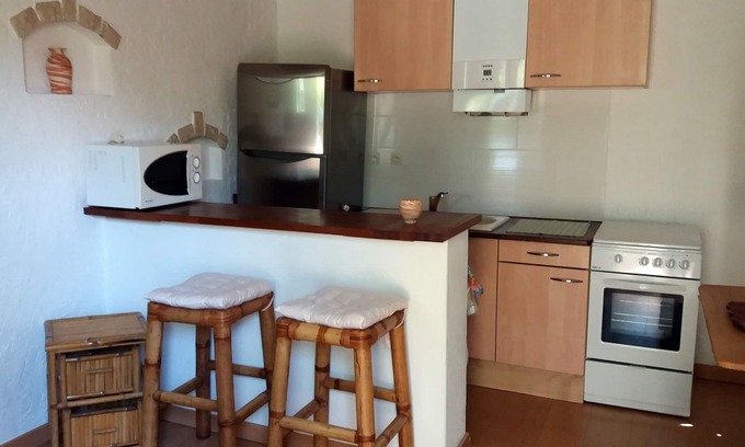 Small apartment very calm between Nice and Cannes with a room with corner office, living room kitchen, bathroom WC, private courtyard 33m2 with garden furniture, gas grill, local washing machine and second toilet. Located 800m from the beach, close to shops restaurants. Possibility of putting bikes at disposal to walk to the village or along the seaside in the direction of Antibes or Nice.