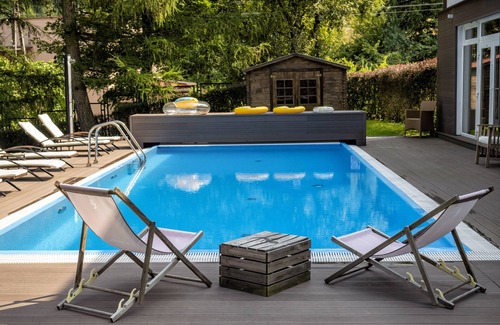 Best-rates for the Pieszyce villa starts from $740 per night with includes TV, Security/Safety, Bedding/Linens, Wellness Facilities, Child Friendly, Hot Tub, Internet, Air Conditioner, Parking, Fireplace/Heating, Barbecue/Outdoor Cooking, Kitchen, Laundry, Pool With all other amenities included. Treehouse Rentals offers a wide range of treehouses, forest homes, cabins, and off-grid retreats, ensuring each traveler discovers their ideal nature getaway—be it a family adventure, a peaceful retreat, or a pet-friendly retreat with the whole group.