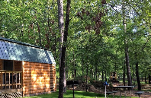 If your looking for solitude and majestic natural beauty, these one room cabins are the place ! This property adjoins Hugo lake in south east Oklahoma. Watch the deer and wildlife right from your porch, soak in the hot tub and gaze at the stars, roast marshmallows and warm yourself by the fire ring. You won’t find a more natural and relaxing atmosphere. These are one room cabins with no bathrooms in them the shower house and bathroom is only about 30 steps away.