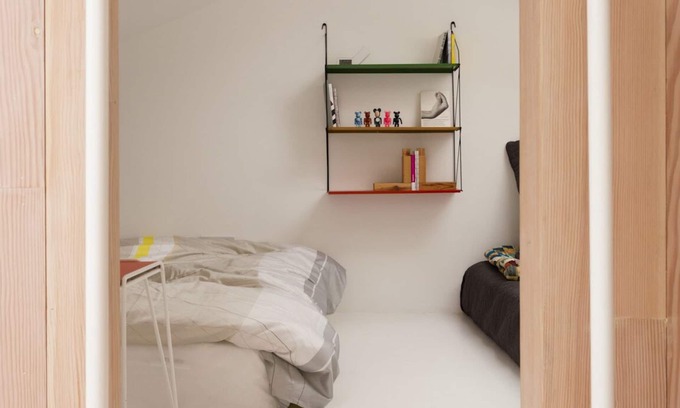 In the heart of London’s East End just behind Bethnal Green Road is a cobble stone alley, where you will find this 430 sq.ft former carpenters workshop transformed into a town house for short or longer stay in London. With a warm Scandinavian, urban feel the interior scheme has unique design elements including a hanging sleeping pod in the form of a shed and in addition ‘hacked’, brightly colored furniture and fittings built by local craftspeople.