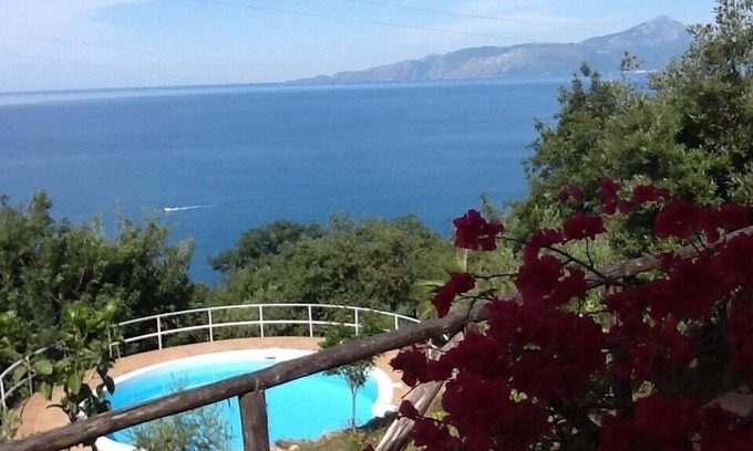 Splendid view of the sea and the Gulf of Policastro, shaded terrace, pool with sunbeds (4) and shower. Beautiful vegetation.