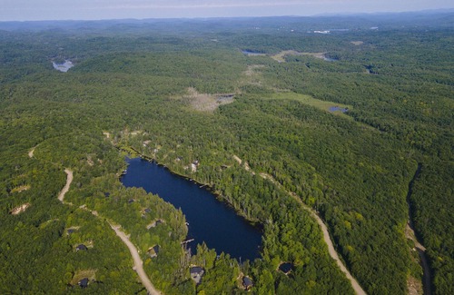 Relax and unwind in this luxurious, quiet and elegant cottage. Just a few minutes walk from a peaceful lake, you can enjoy the nature that surrounds you. The Blaaq cottage has 3 bedrooms, 2 bathrooms, a full kitchen and everything you need to feel at home! Enjoy a relaxing moment around the fire or in the hot tub. Play basketball with friends and family in our illuminated half court. The Blaaq is a smart cottage, with unlimited high speed internet at 300 mbps (Starklink). Non smoking. Note: A 4x4 and good winter tires is required to access the hill during winter or extreme weather conditions.