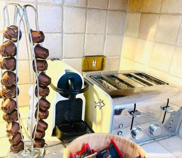 Food & DrinkTea/Coffee maker, Wine/ChampagneBathroomBidet, Bathtub, Shower, Towels, Bathtub or shower, Free toiletries, Body soap, Shower cap, Toilet paper, Private bathroom, Toilet, HairdryerGeneralIron, Key card access, Air conditioning, Safe, Hardwood or parquet floors, Heating, Trash cansMedia & TechnologyTV, Flat-screen TVKitchenElectric kettle, Coffee machine, RefrigeratorLiving AreaDeskBedroomWardrobe or closet, LinensRoom AmenitiesFeather pillow |