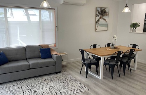 Light and bright holiday home with 3 large bedrooms - one with a king bed, and the other 2 bedrooms have queen beds. Perfect for couples or a small family. Main bathroom with bath tub, shower and toilet, separate toilet in the laundry.