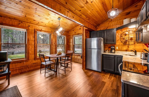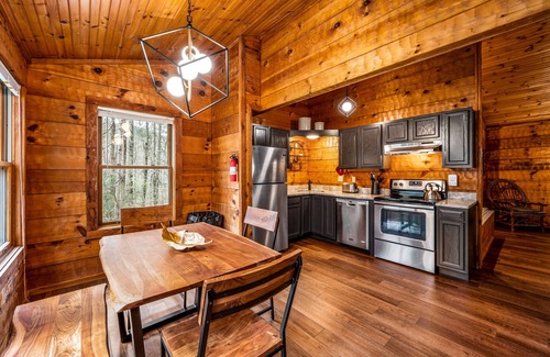 We've created a cozy, private mountain experience with easy paved access, close to everything the Smoky Mountains has to offer. All new modern furniture and bedding, a top-tier kitchen with stainless appliances and granite counters, and a new super luxe tile/glass shower all come together amidst hand-hewn wood walls, nestled among tall peaceful old-growth forest. Situated in a gated community complete with a gorgeous pool with a view, golf course, and tavern just moments from the front door. Pool and Fitness Center access are included with your stay! The pool is typically open from Memorial Day through Labor Day, and the fitness center is available around the clock! Bringing a motorcycle or convertible vehicle? Keep it DRY in our garage!