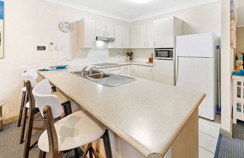 The apartment is well-appointed and fully self-contained, with reverse cycle air-conditioning and all linen supplied. There is a fully equipped kitchen with dishwasher, full sized refrigerator and all cooking utensils.