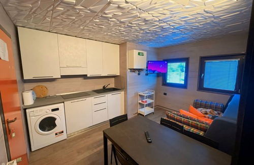 LIVING AREA: Accessible directly from the entrance, there is a charming and functional open kitchen equipped with: hob, coffee machine (with capsules), fridge, washing machine and complete set of cooking utensils.