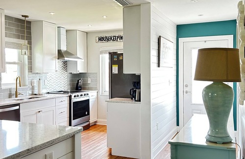 Fully equipped kitchen with cookware, dinnerware & utensils