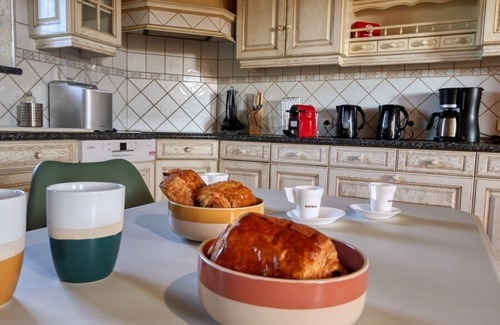 - Fully equipped kitchen: 2 large refrigerators of 200 L, large freezer of 200 L, microwave, oven, ceramic hob, coffee machine NESPRESSO and filter, dishwasher, toaster ... and of course all the dishes, unbreakable glasses, kitchen utensils, flatware for thirty people