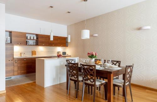 Sobieski Prestige Apartment - 6 min Main Square Kraków is located in Krakow, just 1.1 miles from Wawel Royal Castle and a 15-minute walk from Krakow Central Station. This apartment features free private parking, an elevator, and free Wifi. The property is a 11-minute walk from Town Hall Tower and within half a mile of the city center. The air-conditioned apartment consists of 2 bedrooms, a living room, a fully equipped kitchen with a dishwasher and a kettle, and 1 bathroom with a bath and a hair dryer. Towels and bed linen are available in the apartment. The accommodation is non-smoking. Popular points of interest near the apartment include Main Market Square, Cloth Hall, and National Museum of Krakow. John Paul II International Kraków–Balice Airport is 10 miles from the property.