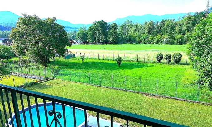 Sofia flat is located in Grantola in the province of Varese. The flat is 8.5 km from the lake and a few metres from a cycle path to the lake. There are bars, restaurants and supermarkets nearby. Sofia is a large and bright four-room apartment of 163 square metres, ideal for families with children. The flat has a garden with a children's playground, a swimming pool and private parking for guests. There is Wi-Fi connection. The living room has a sofa and TV, there is a kitchenette with dishwasher, the bedrooms are 3, one is double, two rooms instead have single beds, the bathroom has a shower and washing machine. The outside space is very large and there is also a terrace equipped with table and chairs.