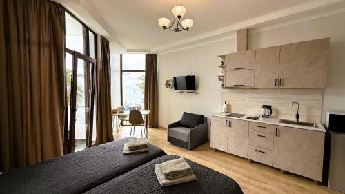 Just a few steps from Gonio Beach and one mile from Gonio Fortress, SofiCoast features accommodations in Gonio with a bar. This beachfront property offers access to free Wifi and free private parking. Petra Fortress is 22 miles from the apartment and Kobuleti Train Station is 25 miles away. Providing a balcony with sea views, this apartment also offers a cable flat-screen TV, a well-equipped kitchen with a microwave, a fridge, and a stovetop, as well as 1 bathroom. The accommodation is non-smoking. Ali and Nino Monument is 10 miles from the apartment, while Batumi Train Station is 11 miles away. Batumi International Airport is 3.7 miles from the property.