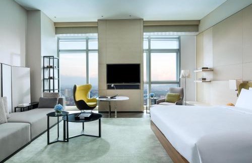 Food & DrinkBottle of water, Tea/Coffee maker, Chocolate/Cookies, Minibar, Wine/ChampagneBathroomToothbrush, Body soap, Toilet, Shower, Bathtub or shower, Towels, Toilet paper, Conditioner, Shower cap, Bathtub, Private bathroom, Hairdryer, Slippers, Free toiletries, Bathrobe, Shampoo, Walk-in shower, Guest bathroomGeneralSoundproof, Key access, Lockers, Ironing facilities, Air conditioning, Tile/Marble floor, Fire extinguisher, Hypoallergenic, Hardwood or parquet floors, Iron, Trash cans, Carpeted, Interconnecting room(s) available, SafeMedia & TechnologySatellite channels, iPod dock, Flat-screen TV, TV, Cable channels, TelephoneServicesWake-up service, Executive lounge access, Wake-up service/Alarm clockActivitiesHot tubLiving AreaSofa, Sitting area, DeskBedroomWardrobe or closet, Alarm clock, Childrens' cribs, Walk-in closetViewView, City viewKitchenDining table, Cleaning products, Coffee machine, Wine glasses, Electric kettleRoom AmenitiesAdapter, Clothes rack, Feather pillow, Socket near the bed, Drying rack for clothing, PajamasEntertainment & Family ServicesChild safety socket coversAccessibilityEmergency cord in bathroomPool and SpaPool towelsExclusive servicesComplimentary snacks and drinks in the executive lounge all day, Complimentary breakfast in the executive lounge, Complimentary afternoon snacks and drinks in the executive lounge, Complimentary access to conference room/business areas |