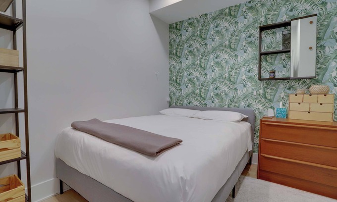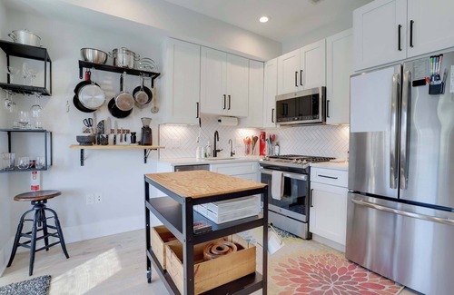 Experience DC like a local! Sojourn in this vibrantly designed home in the LeDroit Park/Shaw neighborhood, NW DC. This home is a 720 sq ft condo with one bedroom, two bathrooms, a den, and has an in-unit washer/dryer. The bedroom has a queen sized bed which can sleep two comfortably. Sink into the pull-out couch in the den and watch your favorite shows on the projector, or get some work done at the desk. The neighborhood is bike and walking-friendly, though parking passes may be available.