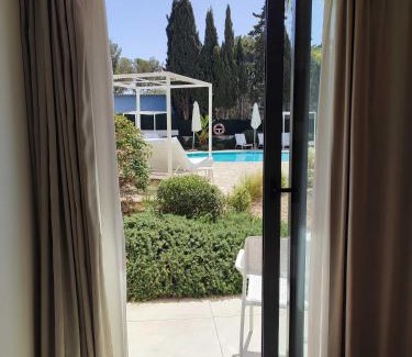 BathroomShower cap, Shower, Free toiletries, Toilet paper, Shampoo, Hairdryer, Walk-in shower, Toilet, Towels, Private bathroom, Bathtub or shower, Body soapGeneralFire extinguisher, Key card access, Safe, Heating, Air conditioning, Hardwood or parquet floors, Iron, Smoke Alarm, Trash cans, Soundproof, Ironing facilitiesMedia & TechnologyFlat-screen TV, TV, Telephone, Satellite channelsActivitiesHot tubKitchenRefrigeratorLiving AreaDeskOutdoorsOutdoor furniture, PatioViewView, Pool view, Garden viewServicesWake-up serviceBedroomWardrobe or closet, LinensAccessibilityEntire unit located on ground floor, Entire unit wheelchair accessible, Raised toiletRoom AmenitiesDrying rack for clothing, Clothes rack, Socket near the bed, Non-feather pillowPool and SpaPool towels, Pool with a viewFood & DrinkBottle of waterSafety featuresAir purifiersPhysical distancingSingle-room AC for guest accommodationCleanliness & disinfectionHand sanitizer |