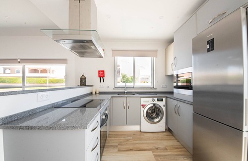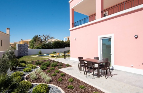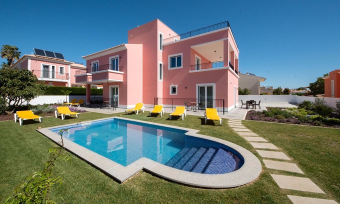 Villa with 5 bedrooms with private bathroom, balcony, kitchen and living room. The rooms and public areas are equipped with air conditioning, wireless and cable TV, and the first floor has access for people with reduced mobility. In the basement there is a gym. The kitchen is equipped with a washing machine, stove and refrigerator. On the terrace you can enjoy a jacuzzi with a solarium area, enjoying a 360º view of the surroundings, including the sea. It is located in a quiet location 1500 meters from the historic center of Lagos and 900 meters from Porto de Mós beach.