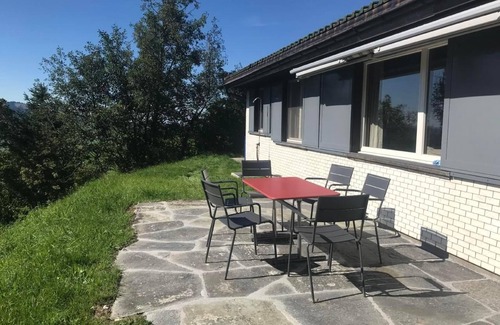 The detached holiday home is situated at 1160 m, 5 km from Appenzell, in the middle of the Appenzell - Kronberg hiking area. The cosy house and the spacious grounds invite you to relax and the fireplace in the living room creates a homely atmosphere. The 4 1/2 room house offers space for 6 people and the minimum stay is 5 nights. This means you benefit from the popular Appenzeller holiday card, which you can use to explore our village and the surrounding area.included in the price: Towels, kitchen linen, bed linen, wood, electricity, water, W-lanThe price does not include the visitor's tax from 16 years. 2.50.- per person and day.the accommodation is 84 m2 and has a spacious garden including terrace and barbecue area.the house has 3 bedrooms. There are no doors in 2 of the bedrooms (a curtain replaces the door) and there is no underfloor heating. Slippers are therefore recommended.