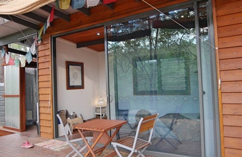 The cabin is on one end of our property approximately 100 metres from the main house in a bush setting. It is private enough to be able to go deep into your practice. There is a large deck for when you want to enjoy the outdoors.