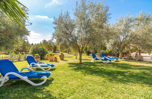 Farm estate "Son Catlar", detached, surrounded by meadows and fields. 5 km from the centre of Inca, 26 km from the centre of Ca'n Picafort, 37 km from the centre of Palma, 24 km from the sea, situated at the foot Puig Santa Magdalena. Private: natural state property 7'000 m2 (fenced) with wildlife garden and trees, swimming pool (8 x 4 m, seasonal availability: 01.Jan. - 31.Dec.). Outdoor shower, arbour, pergola, terrace, garden furniture, barbecue, pool maintenance by the owner/gardener. In the house: air conditioning. Parking on the premises. Supermarket 2 km, restaurant 3 km, bus stop "Inca" 5 km, railway station "Inca" 5 km, sandy beach "Alcúdia" 24 km. Hiking paths: Puig Santa Magdalena 3 km. Please note: car recommended.