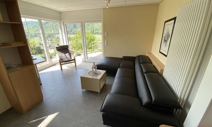 We offer you a holiday apartment with a kitchen and dining area, living room with satellite TV, WiFi, toilet with bathroom, parking space, garden and bicycle garage. The Sonnenhof is located in Enkirch on the Middle Moselle, surrounded by vineyards in a sunny outskirts and has a wonderful view of the Moselle valley. It is only a few minutes walk to the historic town center.
