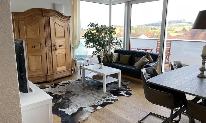 Situated in Wittenhofen and only 20 km from Fairground Friedrichshafen, Sonnige Penthouse features accommodation with mountain views, free WiFi and free private parking. With garden views, this accommodation offers a patio. The apartment features 2 bedrooms, 1 bathroom, bed linen, towels, a TV, a fully equipped kitchen, and a terrace with city views. A children's playground is available on site and golfing can be enjoyed within close proximity of the apartment. Lindau Train Station is 46 km from Sonnige Penthouse, while Trainstation Friedrichshafen is 21 km from the property. The nearest airport is Friedrichshafen Airport, 20 km from the accommodation.