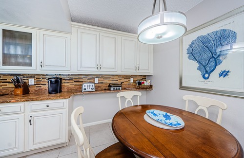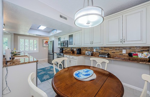 The fully equipped kitchen has stainless steel appliances and ample counter space. The kitchen features additional counter space to seat 4 guests. Whether you're preparing a simple breakfast or a family dinner, the beach views from the kitchen will undoubtedly add a touch of magic to your experience.