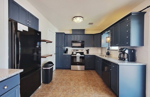 After an exciting game day, or a night out on Campus Corner, come back and relax in a one-of-a-kind home with a hot tub and some beautiful artwork from local muralist. We are just over a mile from Campus Corner, so if you don't feel like cooking in our fully stocked kitchen, there are plenty of restaurant options nearby. Wind down on our couch, and binge some shows on the 65" Roku TV or one of the three 32" Roku TVs, or take some fun selfies in front of the massive mural inside the home.