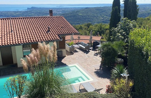 Your luxury getaway awaits you at this delightful 3-bedroom villa overlooking lake garda. With a king bed and two queen beds, this beautiful property offers a cozy retreat for your family or a group of friends. Enjoy the magnificent view from the terrasse, a pool just for you (heated May - September), sunbeds at different spots in the mdeiteranean garden, inside and outside dining areas, a grill, WiFi, a fire place for cozy evenings, heating, a washing machine and a dryer. The kitchen is fully equpped if you want to cook, although there are many restaurants ony a short drive away. There are two bathrooms, one ensuit from the master bedroom with large walk in showers, hairdryer, heated mirror and a bidet.