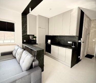Sophia & Maya - Luksusowe Apartamenty Z Tarasem Blisko Centrum Katowic - Prywatny Parking - Self Check-In 24h is a recently renovated apartment in Chorzów near Ruch Chorzów Stadium. This property offers access to a terrace, free private parking, and free Wifi. All rooms include a balcony with views of the quiet street. The units come with tiled floors and feature a fully equipped kitchen with a dishwasher, a dining area, a flat-screen TV with streaming services, and a private bathroom with shower and a hair dryer. An oven, a microwave, and fridge are also featured, as well as a kettle. At the apartment complex, all units include bed linen and towels. A mini-market is available at the apartment. Fitness classes are available at the property. Stadion Śląski is 1.6 miles from the apartment, while Silesia City Center shopping mall is 3.2 miles away. Katowice Airport is 20 miles from the property.