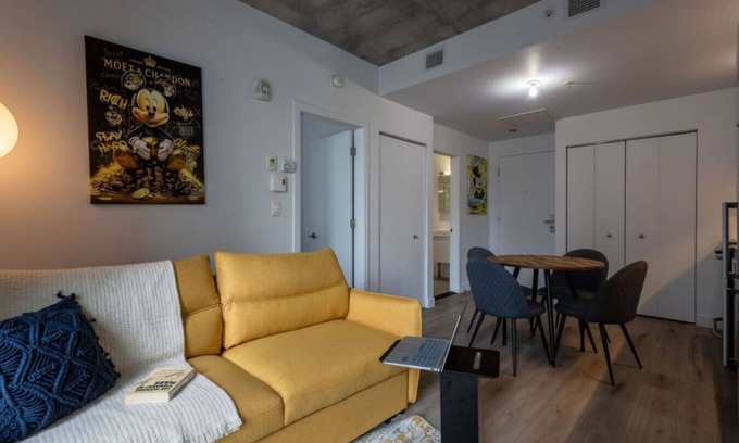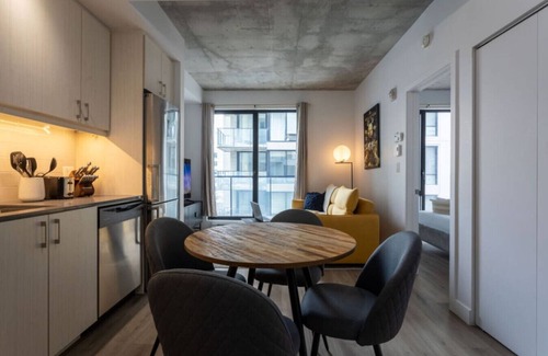 Step into a cozy and contemporary one-bedroom apartment located in the heart of Montreal’s vibrant Old Port. Designed for both comfort and functionality, the space features a queen-sized bed in the bedroom and a modern sofa bed in the living area—offering extra sleeping accommodations for up to four guests.