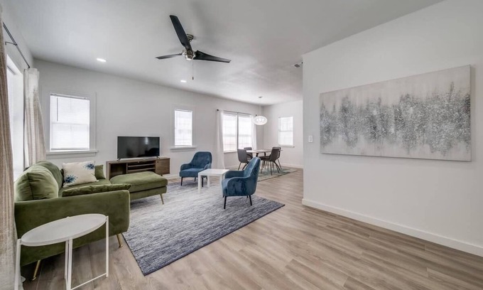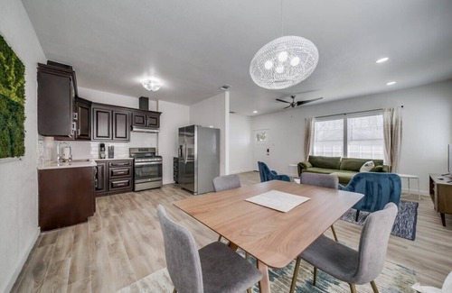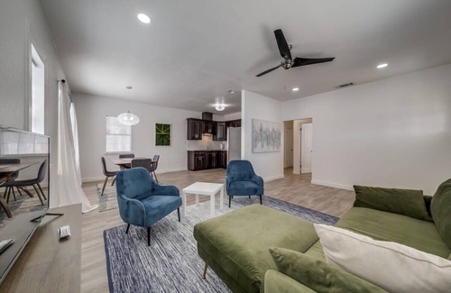 Featuring an open design living area, fully equipped kitchen, washer/dryer, smart TV, high-speed Wi-Fi, and free parking, this lovely home provides a comfortable and convenient stay.
