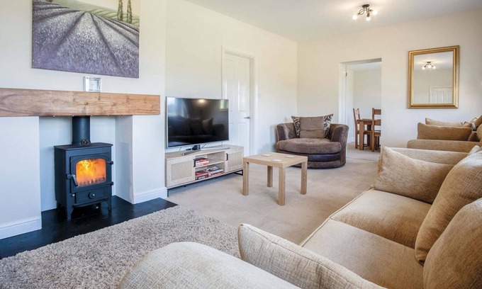 Step inside Sorrento and be greeted by a cosy living room, thoughtfully furnished with plush seating, a large television, and a charming log burner - an ideal setting for unwinding after a day of exploration. Adjacent, a spacious dining room awaits, providing seating for eight guests to enjoy delicious meals together.