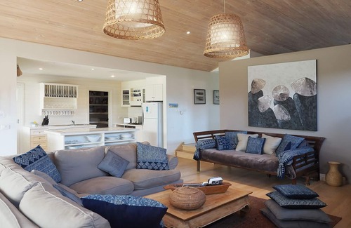 This spacious, two storey, air-conditioned beach house comprises of 4 bedrooms and sleeps 10 people. Upstairs Master Bedroom with King Bed, WIR and ensuite. Second Bedroom with King Bed plus Single Bed pull out.. Third Bedroom with Queen Bed. Fourth Bedroom with Double Bed and Single Bed bunk. Linen provided.