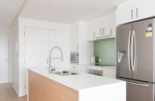 The Apartment: A stylish air conditioned apartment offering open plan living & dining with floor boards throughout. Guests have use of a large flat screen with Foxtel, Telstra TV and Wifi, from here you have access to a balcony with a table and two chairs providing elevated filtered water views. The fully equipped modern kitchen is fitted with an island bench and includes a cooktop, oven, microwave and dishwasher and a large two door fridge/freezer.