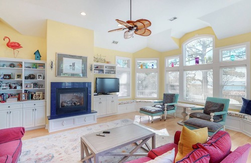 This beautiful sound-front home offers breathtaking views of the Currituck Sound and gorgeous sunsets. Only a few steps from the sound-side pool, tennis, sports center and observation pier.