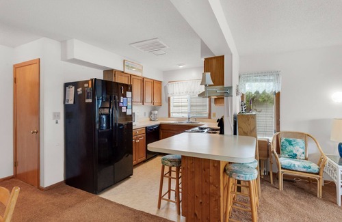 When you make your way into the lower level of this adorable, soundside duplex, you will find a spectacular Living Area with new beach-themed furniture and sliding glass doors that take you out onto the newly Furnished Deck. Soak in the natural light of the Outer Banks with open, cathedral ceilings and bright walls that exude the peace and calm of being near the ocean. Cook up a delicious seafood meal in the Kitchen, with its pristine new appliances, for the entire family to enjoy in the Dining Area or at the Breakfast Bar nearby. The recently renovated downstairs Bathroom ensures that everyone will be comfortable during their stay. Rest up for a full day of sightseeing and playing at the beach in the King Bedroom on their floor.