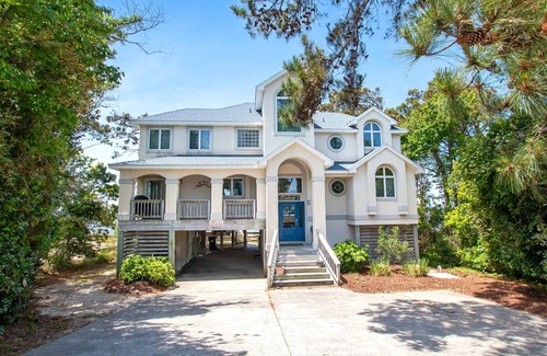 Break free from cookie-cutter getaways and immerse yourself in sound front bliss at Timberly II, a gracious 5 BR, 4 ½ BA retreat tucked among towering pines at 914 Monteray Drive. Four of the bedrooms boast private sound front deck access. Step onto the back deck with your morning brew and watch osprey wheel over the Currituck Sound—then, after a blissful beach day, claim an Adirondack at happy hour as you savor your own epic waterfront sunset. Timberly II is in a prime Corolla location being just a 3-minute stroll to the Monteray Shores pier & seasonal clubhouse—think pickleball courts, tennis, playground, fitness center & large outdoor pool! Guests are able to enjoy all of these amenities! It is .3 miles from the Bonita Street Beach Access, close to the Food Lion, produce stands, and Timbuck II shopping center and restaurants. The Historic Corolla Lighthouse is only a few miles up the road!