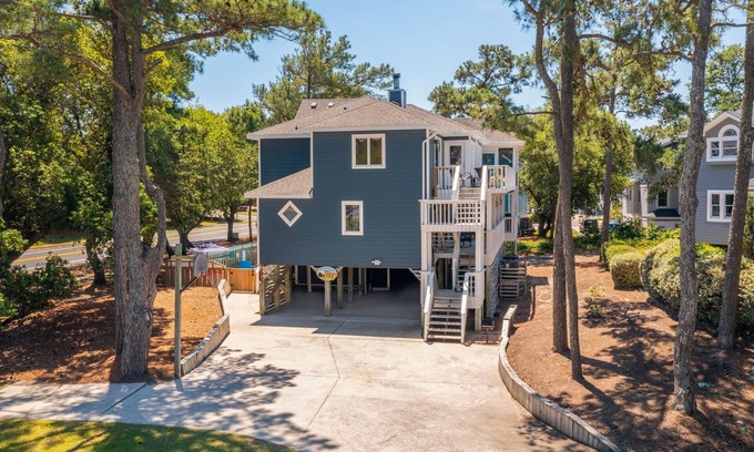 The Sounds of Joy is a beautiful 7 bedroom home with 5 full bathrooms and a half bath conveniently located on the top level. It is located on a cul-de-sac with views of the water and is just steps away from the Currituck Sound. L2 kayaks are available for the enjoyment of our guests.