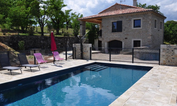 Guests can relax in the shade of the covered terrace or prefer the oak trees and enjoy a wide view over the surrounding nature. From mid-April, you will also enjoy the sun by the private pool completely fenced and closed by a safety gate. A game of petanque, on the ground near the house, will animate your evenings.