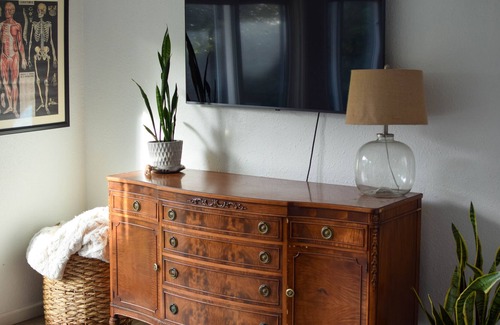 Darling 1 bedroom, 1 bathroom house in South Beach! 2 minute walk to the beach, located about a mile south of Lost Creek Park. House has two large living spaces and a fully equipped kitchen. Many views of the Pacific Ocean from the house and yard. Dogs allowed. 8 minutes south of the Newport Bridge. Private setting in beautiful South Beach. Come enjoy the Oregon Coast! Only available for stays longer than 30 days.
