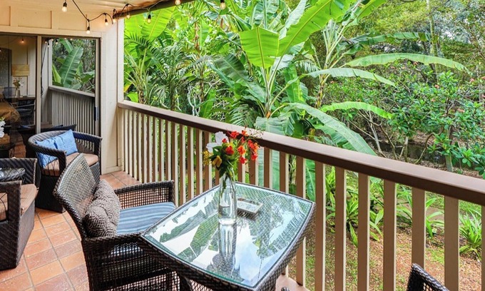 Waikomo Streams is a peaceful, tranquil, and beautiful property with immaculate gardens. Immerse yourself in a paradise garden view on the Garden Island! We have an updated, air conditioned unit that is quiet and comfortable. The property boasts tropical gardens, a variety of plants, and a koi pond. We are walking distance to The Shops at Kukui'ula and The Poipu Shopping Village for shopping, restaurants, and bars.
