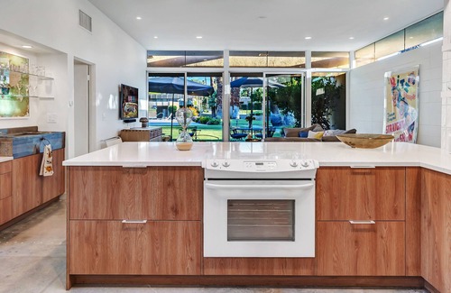 Incredible mid century modern and comfort galore condo with mountain views, pool, trails, floral paths, walk to all, and so much fun mid century stuff to admire and Hollywood artifacts! Set up as a two bedroom but we have an office room that can be accommodation for another person if needed with air bed, and two large down clubchairs/ottoman.we are set up as two bedrooms but our third bedroom is like a den office. however we have a really comfortable queen airbed if needed
