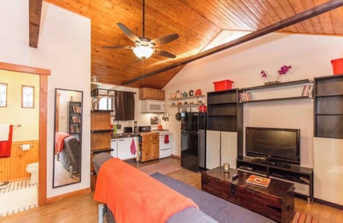 You will have access to a washer/dryer, flat screen TV, DVD player, high-speed WiFi, two BBQ's, new refrigerator and garbage disposal. Queen comfortable futon with down comforter and bedding. For those that like to bake or cook there is a full kitchen with anything you will need. There is a full desk area, book shelves with books and DVD's, closet and storage space.