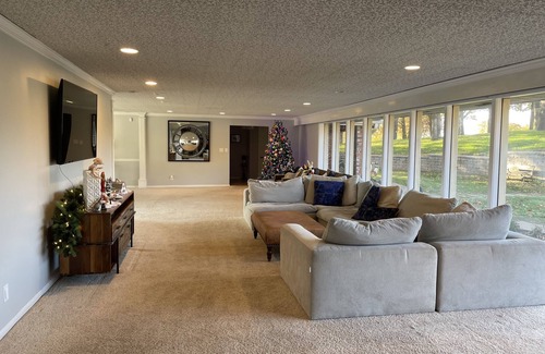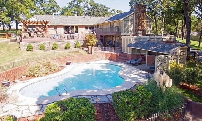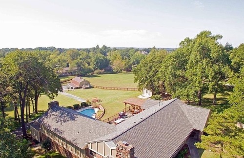 Located in the heart of south Tulsa, this 7 acre gated gem is a private oasis. Located 5.5 miles away from Southern Hills Country Club and with easy access to the highway, guests have a quick trip to some of Tulsa's best spots like the Gathering Place. Enjoy a private splash in the pool and soak up the sun on the back deck. We are happy to host longer term rentals for a discounted price upon request.