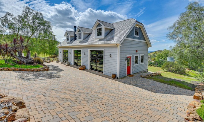 Escape to a refreshing retreat in California at this unique 2-bedroom, 1.5-bathroom cottage with breathtaking views. Located in the hills of Ramona at ‘Full Circle Farms,’ this vacation rental offers the space you need while keeping you near unique attractions and sightseeing around the Laguna Mountains. Spend your days strolling through the sustainable, lush landscape, touring wineries, driving out to San Diego for a day, or spending a morning enjoying tee time at nearby golf courses.