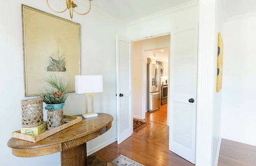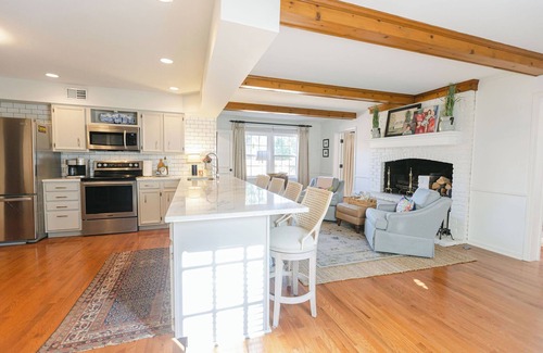 Enjoy Kentucky Derby 2025 in this gorgeous home filled with comfort and amenities. This spacious house was lovingly remodeled with high-end finishes and original artwork for an experience of casual elegance. Although the track is only 12 miles away, the area is peaceful with mature trees and privacy. The house is located in the East End of Louisville, a locals-only spot with great shopping and dining. Our large deck is perfect for relaxing with wine after the track.
