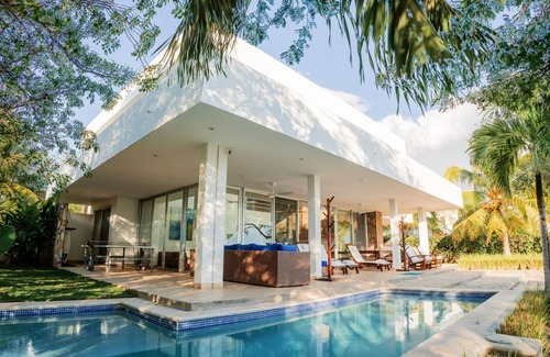 A fully-staffed 4-bedroom luxury beach house located on one of the best surf breaks in Nicaragua with dozens of 5-star reviews now marketed by NicaLuxe but with the same on-the-ground team. Bedrooms are all airconditioned, stocked with high-end linens, and can be made up with twin or king beds. Floor-to-ceiling windows offer epic views from all rooms. Enjoy ocean-facing lounge seating and dining, outdoor BBQ, ping-pong, and a plunge pool. There's a backup generator and high-speed 5G internet