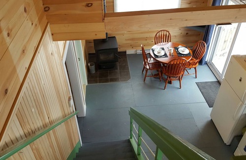 Southrock Cottage, your cottage retreat, located on the Cabot Trail with spacious and private waterfront on South Harbour. The first floor has one bedroom with a queen bed, an enclosed very private glassed-in porch, 3 pc washroom, and open kitchen and dining area. The second floor open loft, which overlooks the 1st floor kitchen dining area and beautiful South Harbour, includes a TV / reading area and sleeping area with two single beds. Exterior space includes multiple decks (6), a separate screen house (right next to the water), staircase between decks and private water beach area. There is also a separate laundry and recycling centre and a small storage building housing firewood, paper, etc. Throughout one enjoys views of the water and mountains.