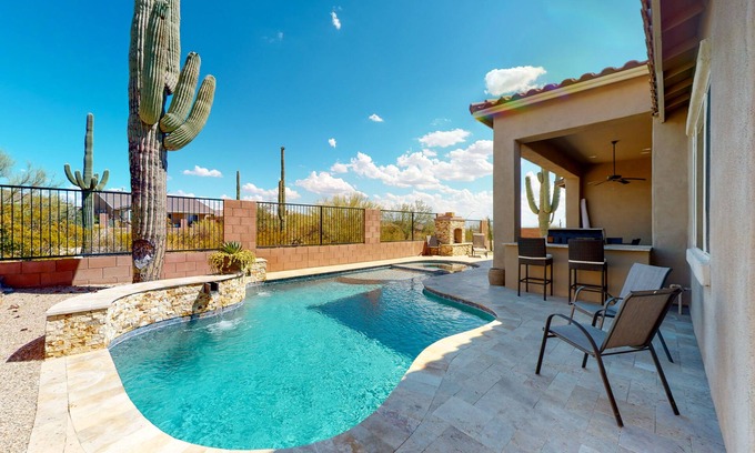 Southwestern stunner with enclosed yard, pool, putting green, & grill has 4 Bedrooms , 3 Bathrooms, and max occupancy of 8 people. The minimum rental for this property is 1 nights, but this can change depending on the season you plan on staying. Previous guests have given good rated it, and VRBO labeled it a top-rated House because of the excellent services rendered by the owner or manager of this House, and has consistently provided great experiences for their guests. Most families or guests that use it recommend it to their friends and some of them are repeat guests. House has a friendly neighborhood, and the Dove Mountain has interesting places to visit. If you want to learn more about the House in Dove Mountain, such as places to visit and things to do nearby, you can check below to learn more.
