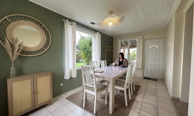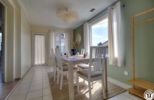 Escape to Dombes and enjoy a natural and comfortable break just 1 hour from Lyon! Welcome to Dompierre-sur-Veyle, a newly renovated, bright, single-story detached house. Everything here has been designed to accommodate 6 people. Impossible to get bored: explore the region's myriad facets! Just a stone's throw away, Dombes and its hundreds of ponds offer fresh air walks and unforgettable sunsets. Experience the unforgettable at the Bird Park in Villars-les-Dombes, a trip around the world in a single day, surrounded by flamingos, parrots, and pelicans. For the more curious, let yourself be carried away by the medieval streets of Châtillon-sur-Chalaronne, between covered markets and half-timbered houses, for a dive into history. Don't forget to check out the Saturday morning market. Be impressed by the majesty of the Royal Monastery of Brou in Bourg-en-Bresse, a true flamboyant Gothic masterpiece. Dreaming of a little coolness in the summer? Nothing beats a day at Lake Bouvent, a 56-hectare green setting and a lake just minutes from downtown Bourg-en-Bresse. Sports enthusiasts can swing on the greens of the surrounding golf courses, in a lush setting. For epicureans, welcome to the premier freshwater fishing region and traditional markets. After your getaways, return to the peace and quiet of your vacation home. The atmosphere is warm thanks to its wood-burning stove, which invites relaxation. Outside, the amenities are gradually being installed, but already, the countryside beckons you to savor moments in the great outdoors. Technical details: fully equipped kitchen open to the living room and its lounge (sofa for two). Two bedrooms (one queen-size bed and two single-size beds, each with a 90x190cm bed). Shower room and separate toilet. Travel light: beds made upon arrival, towels and utilities included. Cleaning fee €60. Bike storage, laundry room with outside access.